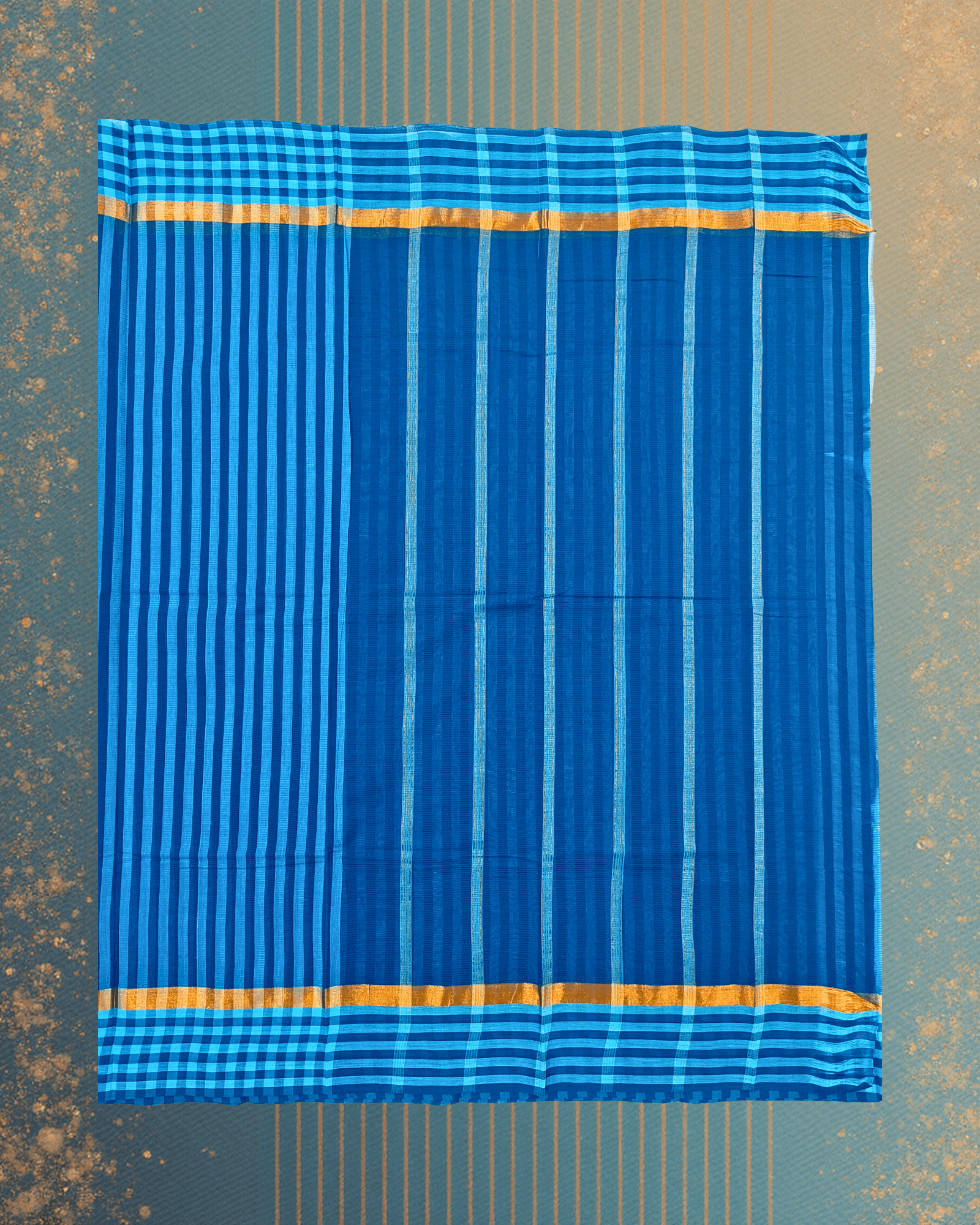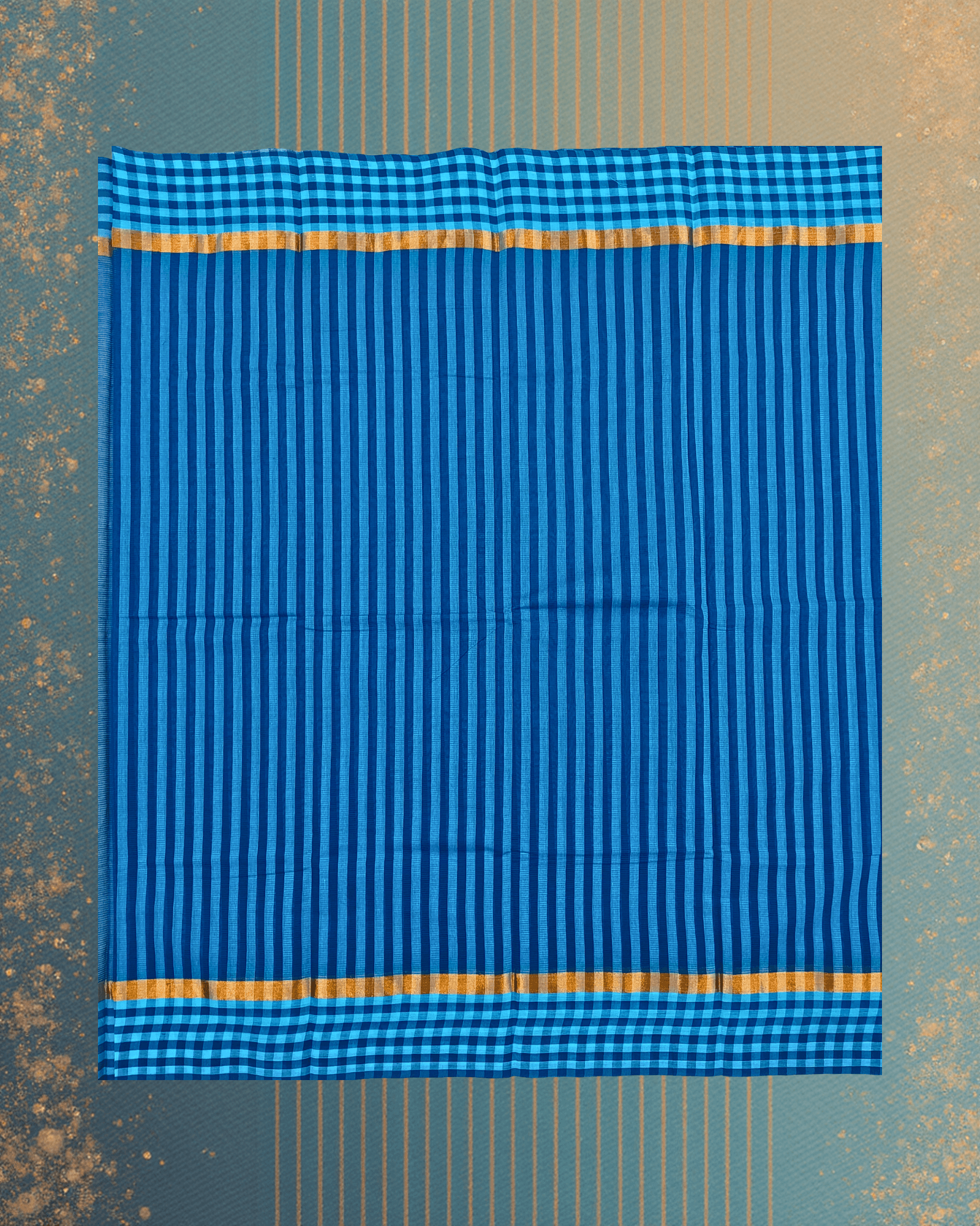 - Contrast Border: Multi-Patterned (Vertical & Horizontal Stripes) with Golden Jari